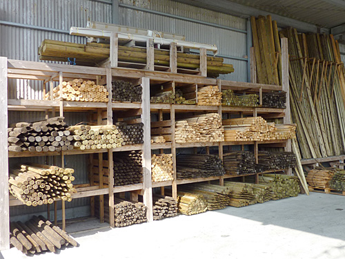 丸太・支柱材・保護材(幹巻きテープ・人工杉皮・根巻きテープ)・しゅろ縄・麻縄